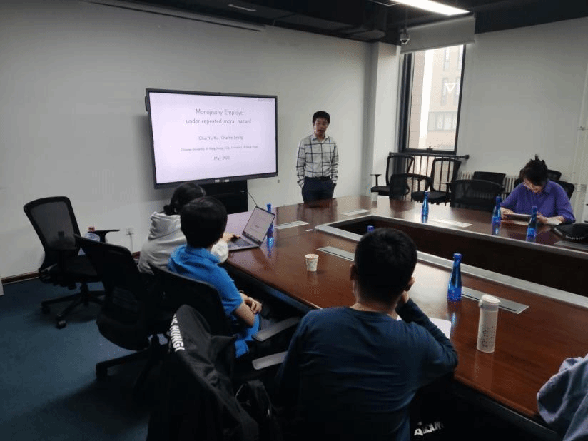 2023年5月19日14:00,香港中文大学院长聘副教授高超禹应1946伟德国际源自英国邀请,开展主题为“Monopsony Employer under Repeated Moral Hazard”的讲座,高超禹老师受到了老师和同学们的热烈欢迎!1946伟德国际源自英国黄乃静副教授主持讲座,尹振东教授,龚雅娴老师参加了讲座。