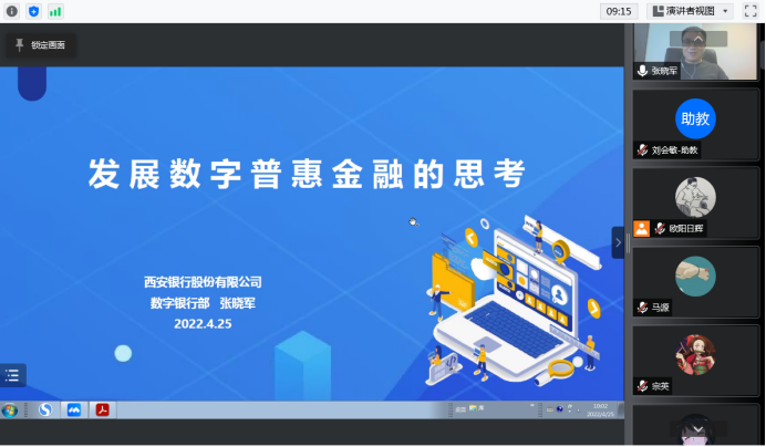 2022年4月25日上午10点,西安银行股份有限公司数字银行部总经理张晓军应邀加入1946伟德国际源自英国“数字金融理论与实务”线上课堂,以“发展数字普惠金融的思考”为题,为同学们带来了一场精彩纷呈的讲座。