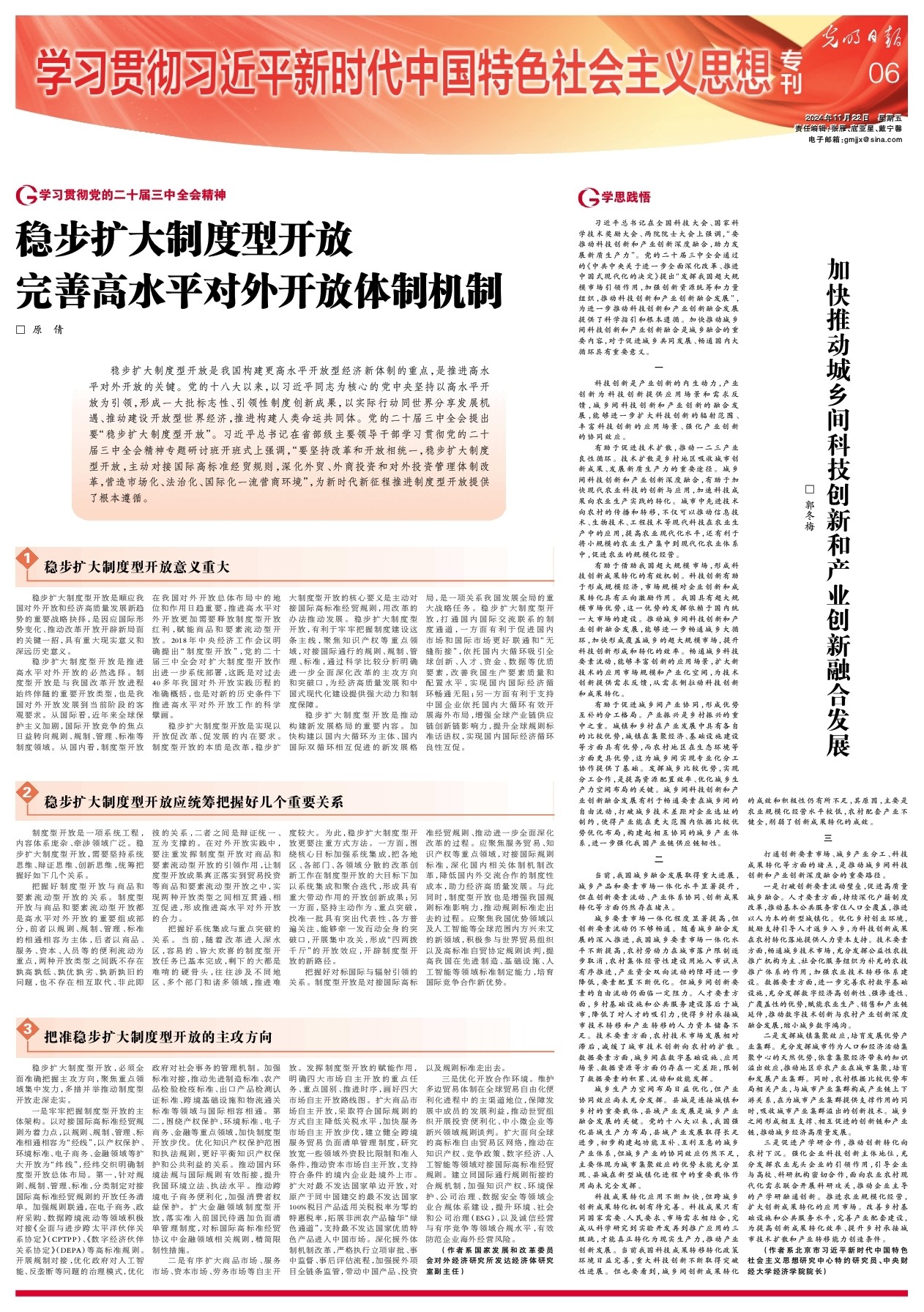 文章指出,习近平总书记在全国科技大会、国家科学技术奖励大会、两院院士大会上强调,“要推动科技创新和产业创新深度融合,助力发展新质生产力”。加快推动城乡间科技创新和产业创新融合是城乡融合的重要内容,对于促进城乡共同发展、畅通国内大循环具有重要意义。