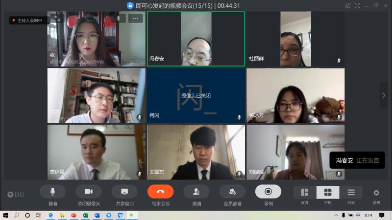 按照线上答辩会流程,会议分为邀请参会人进入线上会议室,答辩委员会主席介绍答辩委员会成员和答辩规则,学位论文答辩人验明身份后陈述、委员提问、答辩人回答问题,答辩人和旁听者退出会场,答辩评议及投票表决,答辩委员会决议,邀请答辩人再次入场并宣布决议等七个环节。周莹、王燕芬、刘健升同学顺利完成了论文陈述,并逐一对答辩委员会委员提出的问题进行了回答,答辩委员会委员对答辩过程与结果进行了认真的评议并通过电子选票进行表决。最后,答辩委员会主席分别宣布答辩委员会全票通过周莹、王燕芬和刘健升同学的学位论文答辩,并全票通过建议授予经济学博士学位。