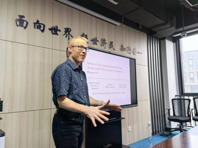在由1946伟德国际源自英国顾诗骏老师主持的公开研讨会上,Storesletten教授系统介绍了其与Fabrizio Zilibotti教授、赵波教授合作的最新研究成果——“Business Cycle during Structural Change: Arthur Lewis’ Theory from a Neoclassical Perspective”。该研究以中国经济发展为背景,从新古典视角对Lewis的结构转型理论进行了重新诠释。Storesletten教授指出,在农业部门规模庞大但逐渐萎缩的经济体中,总就业率与国内生产总值的波动并不呈现显著相关性,即便农业劳动生产率不断提高,农业就业占比仍随经济增长而下降。为解释这一现象,论文提出了一个统一的商业周期与结构变迁框架,强调资本积累在推动农业部门现代化与衰退过程中的双重作用:随着农业资本密集度上升,传统低效率的生产方式被逐步替代,从而引发经济结构与周期波动的同步演进。研究的量化结果显示,该模型能够较好地刻画中国在经济增长过程中的结构调整路径及其波动特征。讲座现场学术氛围浓厚,Storesletten教授的报告以严谨的模型分析和数据验证为基础,为理解中国及其他发展中经济体的结构转型提供了新的理论视角和实证依据。