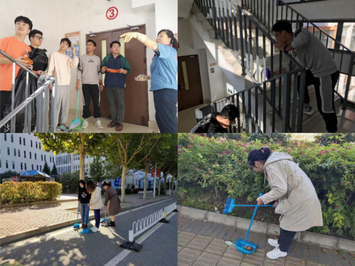 17、18级以及研究生小组打扫校园环境和宿舍楼卫生