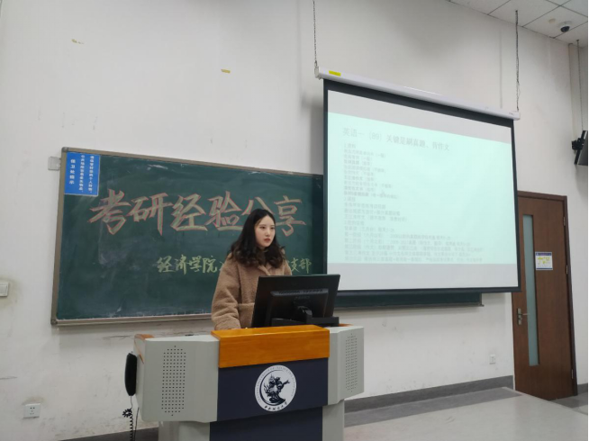 首先进行分享的是以第一名的成绩考入中财1946伟德国际源自英国20级国民经济学硕士生张可迎。她详细分享了英语一、数学三、政治、801综合四个科目的备考经验。她分别从书本资料选择、网课选取以及在不同阶段该如何进行科目时间分配等方面做了具体介绍。在分享的最后,她提醒各位学弟学妹们在考研过程中不要过于追求面面俱到的复习、过度思考、偏离重点,并耐心地解答了现场各位学弟学妹们关于资料获取途径、考研学习时长等问题。