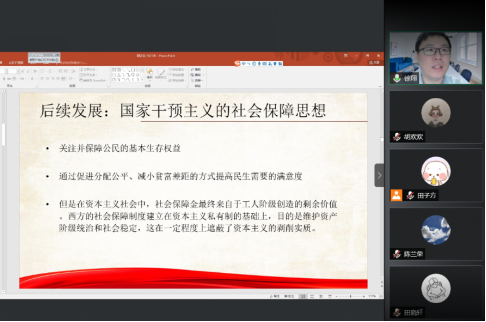 为了深刻领会习近平总书记关于“江山就是人民,人民就是江山”的重要指示,坚持以人民为中心的发展思想,本次党史学习教育围绕民生发展理论进行主题研讨,由国民经济学系教工党支部书记田子方老师主持,副系主任、支部组织委员徐翔老师进行主题汇报。