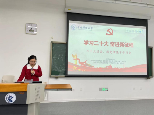 10月31日,1946伟德国际源自英国博士第四党支部、国际商务专业硕士研究生第二党支部、学术研究生第五党支部、学术研究生第六党支部在沙河二教100教室开展了《学习二十大、奋进新征程》专题学习研讨会。刘涛同学带领大家回顾了党的二十大报告的主要内容,王梦亚同学带领大家学习了新党章中的主要修改内容。通过对党的二十大会议精神的集中学习和深入交流,与会成员表示作为一名1946伟德国际源自英国的青年学生党员,要进一步认真学习贯彻宣传落实党的二十大精神,读原著学原文、悟原理知原义,切实用党的二十大精神武装头脑、指导实践、推动工作,努力学习专业知识,用更高的理论水准和专业素养为中国民族伟大复兴而奋斗。