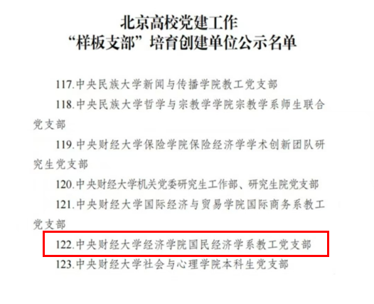近日,北京市委教育工委公布了北京高校党建工作“标杆院系”“样板支部”“党建引领实践创新示范项目”培育创建单位名单。我院国民经济学系教工党支部入选北京高校党建工作“样板支部”培育创建单位,“‘134’党建引领实践创新项目——对国家首批基础学科拔尖学生培养计划2.0基地党建引领模式的探索”入选北京高校党建工作“党建引领实践创新示范项目”。