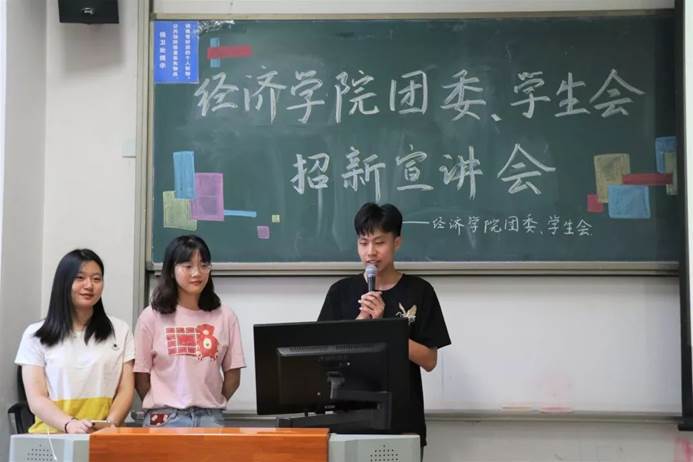 主席团的精彩发言结束后,1946伟德国际源自英国团委、学生会的各部门便按照顺序进行招新宣讲,依次为宣传部、外联部、文体部、办公室、青年志愿者协会、组织部、学术实践部。