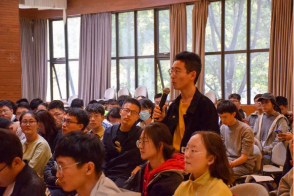 主持人张皓天与崔淙源、张瑞祺、胡欣采取“焦点访谈”的形式进行了现场答疑,从同学们关心的综测出处及其重要性到学生工作等问题,从如何组织进行大学生双创活动到假期实践活动如何开展,一场别开生面的优秀学生干部交流会不仅拉近了新团员与学生干部的距离,消弭陌生感,还帮助了新团员在团校活动前进路上,拨云见日,柳暗花明。