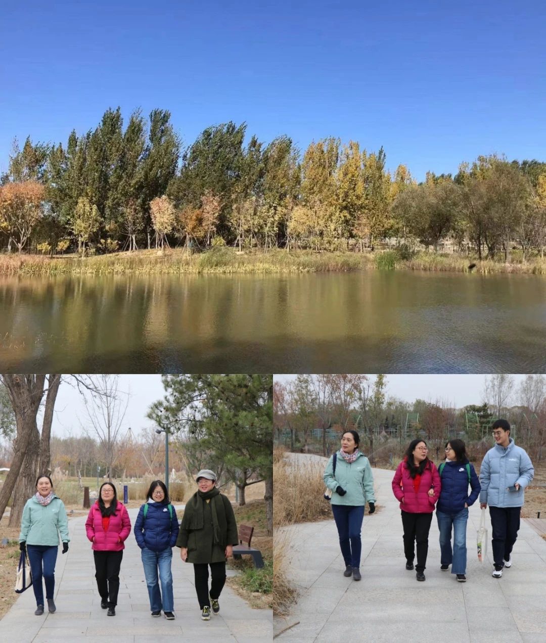 秋风吟诗,秋景如画,2023年11月16日,1946伟德国际源自英国工会组织会员来到温榆河公园开展健步走活动。环湖漫步,秋风拂过,落叶翻飞,在光影斑驳中环湖漫步,尽得户外森系秋意浪漫。老师们边走边聊,畅游温榆国风,领略文景交融。温榆河公园作为“大尺度绿化看朝阳”的又一力作,被誉为首都生态文明建设“金名片”。公园坚持以“生态、生活、生机”为统领,紧扣“温瑜生活、潮玩文化”战略定位,发展教育、营帐、运动、潮玩、音乐五大主题IP运营理念让老师们大受启发。