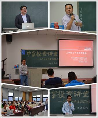 “中富投资讲堂”本学期共计开办6次课程,先后邀请中富投资集团李健民、贾晓鹏、王翊晟、周翔、殷文彬、郇海亮等老师为学生带来了“产业并购思维和实务”、“商业模式分析与改进”、“股权激励实务操作”、“上市公司市值管理策略”、“尽职调查法律核查重点”等6场专题讲座,加深了学生对行业实务的理解,实现了经济学理论素养与专业实践能力的同步提升。