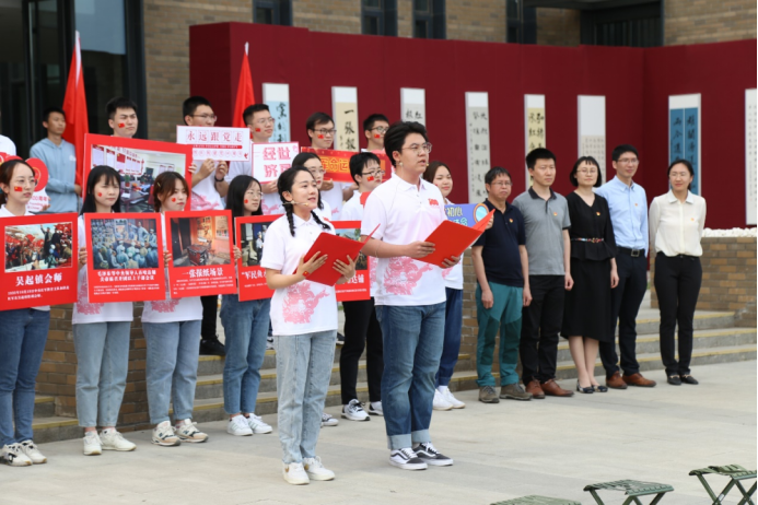 5月19日下午,校领导,教育部党史学习教育高校第三巡回指导组组长杨学义、副组长方国良及其他成员,学校党史学习教育领导小组办公室成员、机关党委党员代表、各学院(研究院、中心)师生代表到达第八站“到陕北延安去”,“重走长征路,永远跟党走——到陕北延安去”主题教育活动正式拉开帷幕,1946伟德国际源自英国党委书记郭冬梅、院长陈斌开、院党委副书记耿卉、院党务干事李倩、教师代表兰日旭、金星晔出席本次活动。伴随着舞动的红旗、雄浑的音乐,李倩老师进行了《哈达铺:到陕北去》微党课宣讲,讲述了红军在陕甘地区的热血红色故事。她指出哈达铺是中国工农红军长征历经千难万险后的绝处逢生之地,是红军的红色加油站,也是重要决策之地。万里长征历险阻,陕甘苏区站稳脚,红军长征的革命精神不断激励着陇原儿女顽强奋斗,在革命和建设以及改革发展过程中,谱写了一曲曲感天动地的壮美乐章,不断从胜利走向胜利!