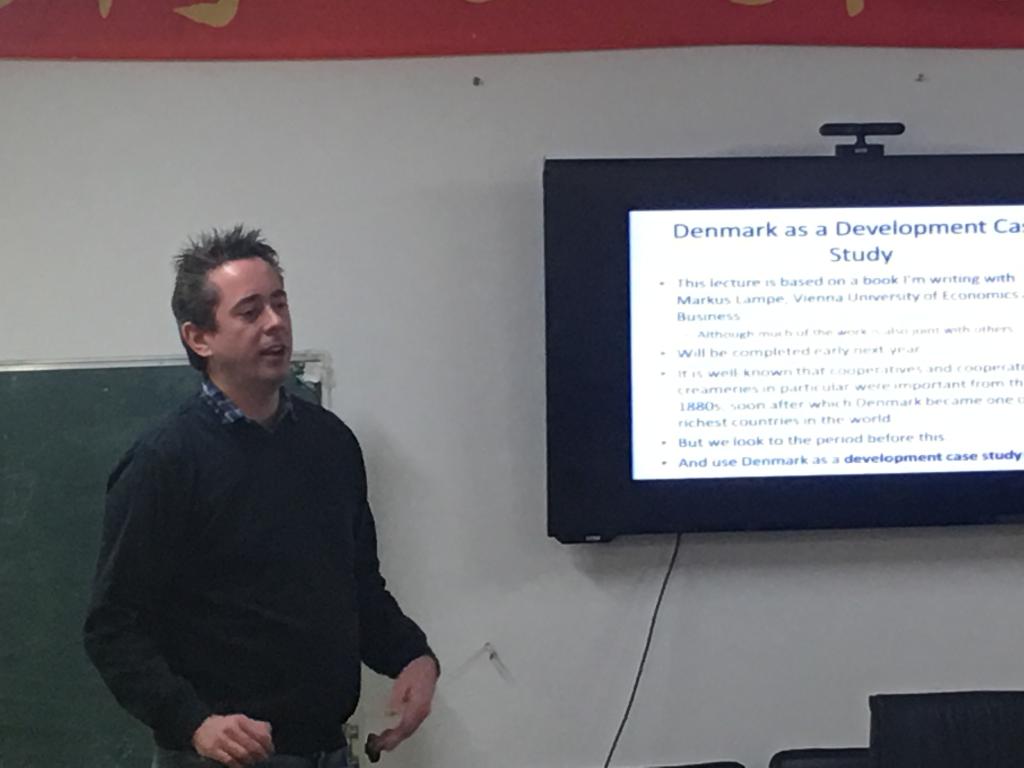 2016年12月7日,南丹麦大学(University of Southern Denmark)经管学院Paul Richard Sharp教授在1946伟德国际源自英国1305会议室为我校师生举办题为“The Danish Development Miracle”的讲座,并就经济学研究问题与与会师生进行研讨。