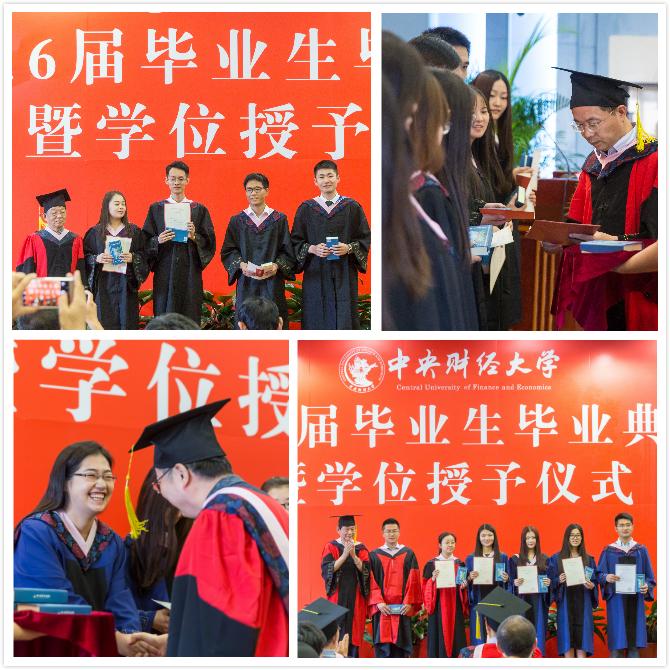 毕业典礼结束后,学院举行了隆重的学位授予仪式。毕业,是学生人生中的大事,更是学院一年一度的喜事和盛事。首先,学院学位委员会主席、院长、博士生导师李涛与硕士生导师共同完成研究生学位授予环节。在院长拨转流苏的同时,硕士生导师则为自己的学生颁发毕业证书和学位证书。每一位硕士毕业生在学位授受的庄严时刻得到了院长和导师共同的美好祝福。随后,院长为每一名本科毕业生颁发了毕业证书与学位证书。