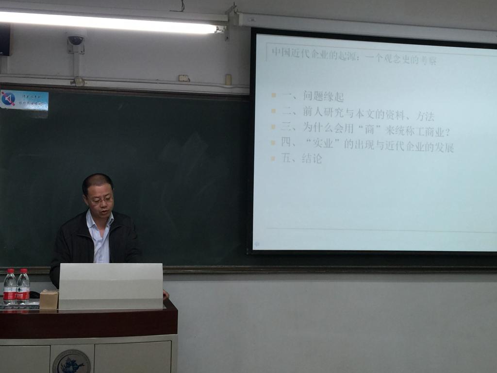 讲座以高超群老师最新近的研究为基础,从观念史演变的角度,考察了中国近代企业的起源问题。高老师以“中国近现代思想史专业数据库”的数据和大量的史实梳理为依据,通过分析近代企业在中国的形成过程,认为很难有某一个确切的时间点是近代企业产生的标志,但到20世纪30年代左右最终形成;认为中国近代企业在20世纪之前,无论在实践中还是在观念中,都更多地在中国传统的框架中展开,而在20世纪之后,在观念上和时间中都发生了较大的转变,但是并不能断定这种改变主要是来自西方世界的影响,我们可以确定的是,这次转变所需要的知识和社会制度支持,比如教育,是传统中国所不能提供的。最后在座的多位老师和同学分别就近代企业方面的诸多问题与高老师进行了深入交流。