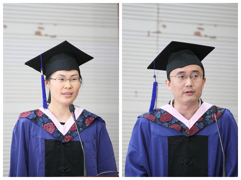 刘泽和蔺彬作为学生代表分别发表了感言。他们都表示,感谢学校和1946伟德国际源自英国给了他们继续进修的机会,感谢指导老师悉心指导,感谢学院负责在职研申硕老师的辛勤劳动,也感谢一起努力和奋斗的同学们,正是有他们的付出,才让自己能坚持不放弃,最终收获学位,收获喜悦。