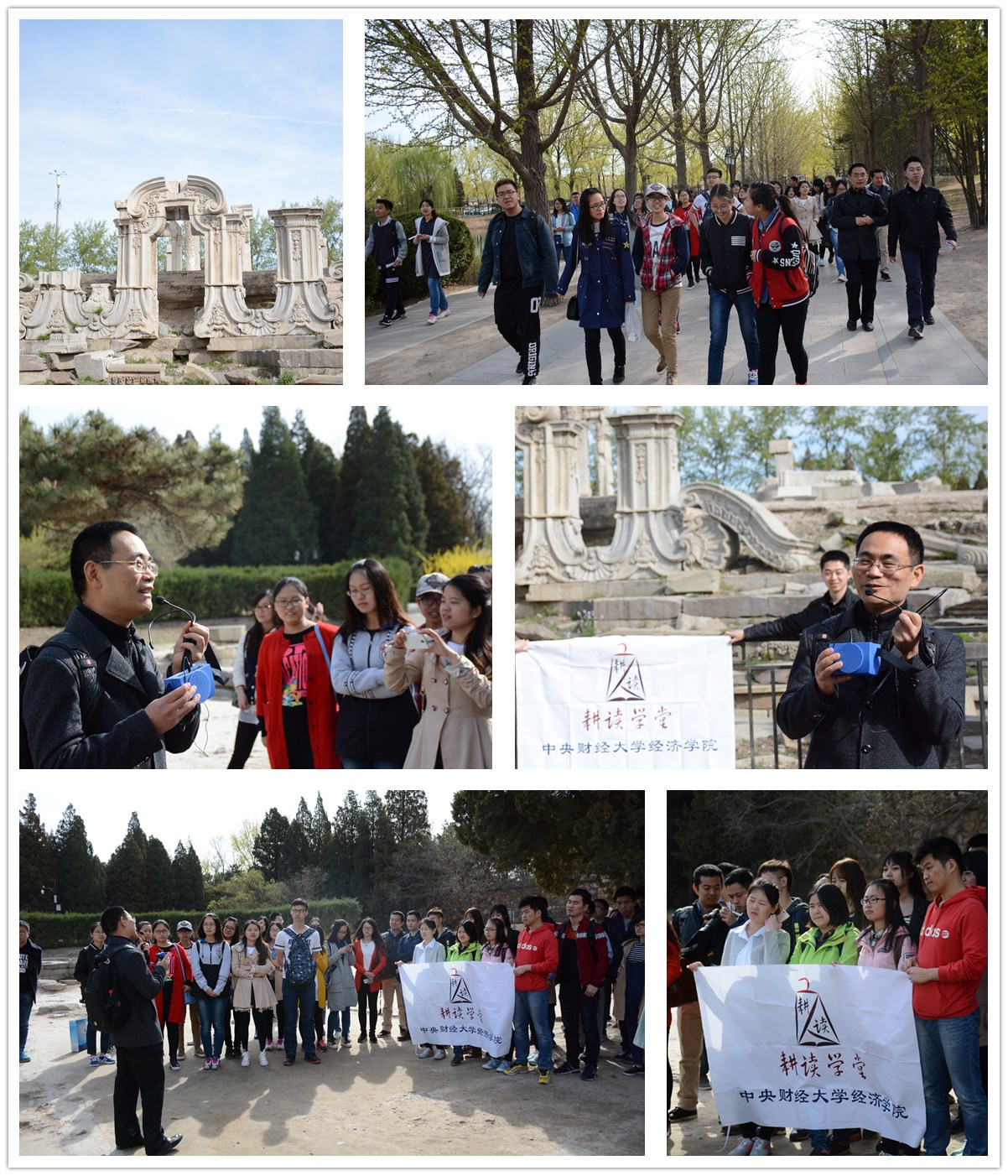 2016年4月2日,清明节小长假伊始,由1946伟德国际源自英国主办的“耕读学堂”第四期活动在圆明园正式开讲。在1946伟德国际源自英国经济思想史系教授孙洪升教授和学院党总支副书记雷洪峰老师等人的带领下,近50名师生一同前往矗立了近三百年、历经辉煌与毁灭的万园之园——圆明园,体验了一次别开生面的经济史户外课程。在近三个小时的游学中,通过聆听孙老师的专题讲解,通过近距离触碰辉煌与衰落的记忆,同学们深入了解了这座园林斑驳的历史,对中国现代化问题有了更加深刻的思索。