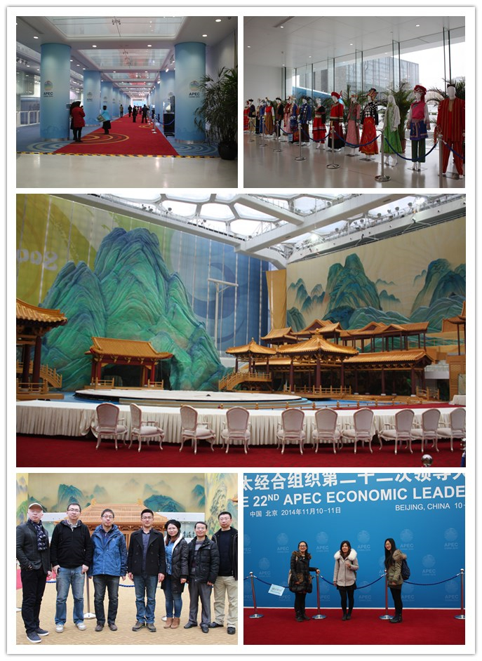 走进水立方,淡蓝色的“APEC”标志洋溢着浓浓气息,仿佛在向参观者诉说着数周前的辉煌一幕。沿着参观路线徐徐前行,地面上出现了长长的红地毯,大厅两侧摆放的中国特色民族服装印入眼帘,展现民族风情的服装靓丽而不失典雅,繁盛而不失庄重,引得大家不时驻足观赏。参观者不禁联想起各经济体领导人脸上的惊羡与赞美,由此而生的,则是心中对祖国难以言表的自豪以及对党的崇敬与感谢。而馆中陈列的中国书法、绘画、玉石和陶瓷作品,则展现了中国文化的厚重底蕴和超凡魅力。视觉的冲击撼动了心灵,每个党员都为祖国的灿烂文化感到由衷的自豪。