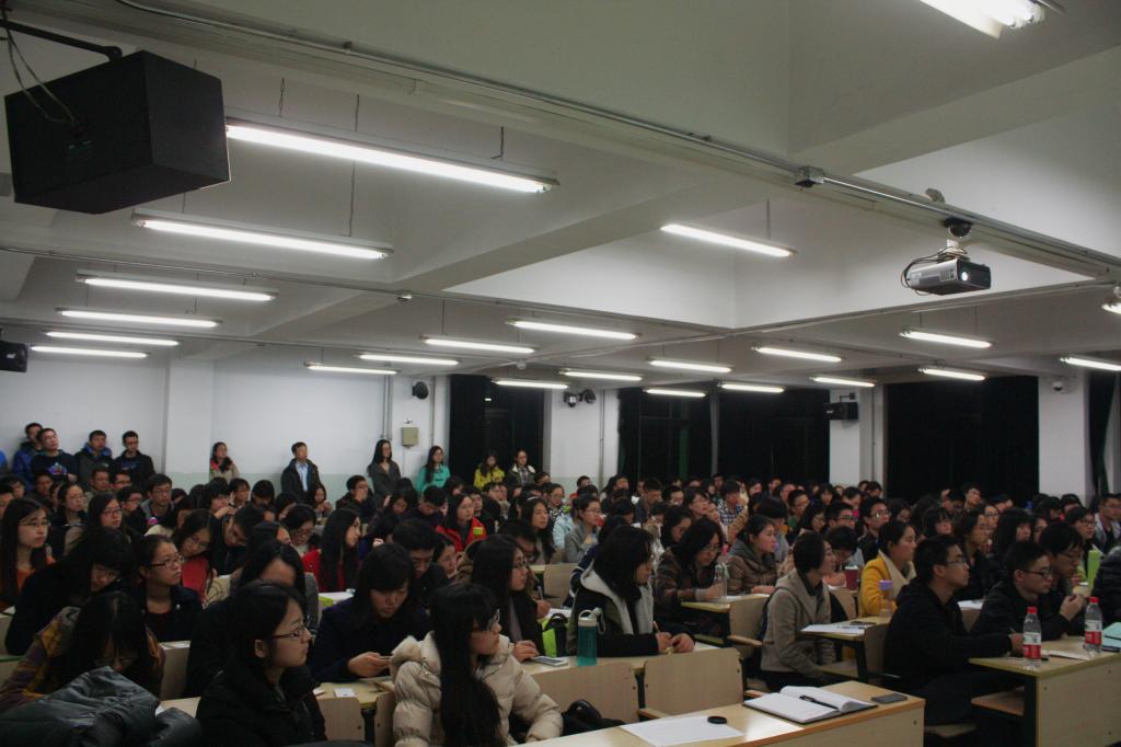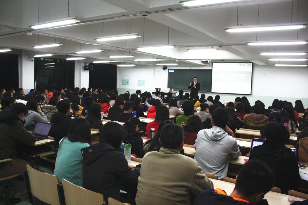 11月24日晚,1946伟德国际源自英国第二次就业沙龙:大学生就业指导系列讲座--2015招聘面试关键技巧培训在学院南路校区主教217成功召开,邀请到了资深面试官王炳森老师为我校学生带来面试方面的资深培训与经验分享。王老师从银行、国企的群体面试、结构化面试等方面入手,详细介绍了面试官情况、面试流程、面试礼仪、注意事项等方面的知识,直接受益学生超过200人。