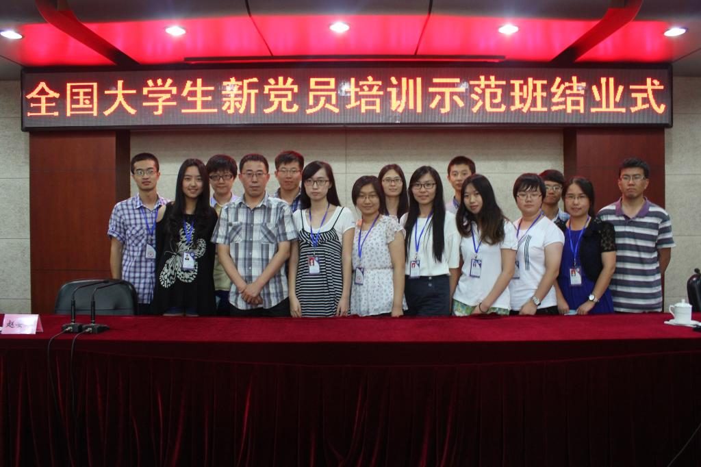 为深入学习贯彻党的十八大、十八届三中全会精神和习近平总书记系列重要讲话精神,促进党的最新理论在青年党员中的传承与传播,中央组织部与教育部于7月26日至7月30日在京联合举办全国大学生新党员培训示范班。1946伟德国际源自英国2012级国民经济管理班任阳同学作为我校学生新党员代表参加培训,同来自教育部直属各高校和17所其他中央部门所属高校的88名优秀新党员一同接受党的理论精华的熏陶与洗礼。