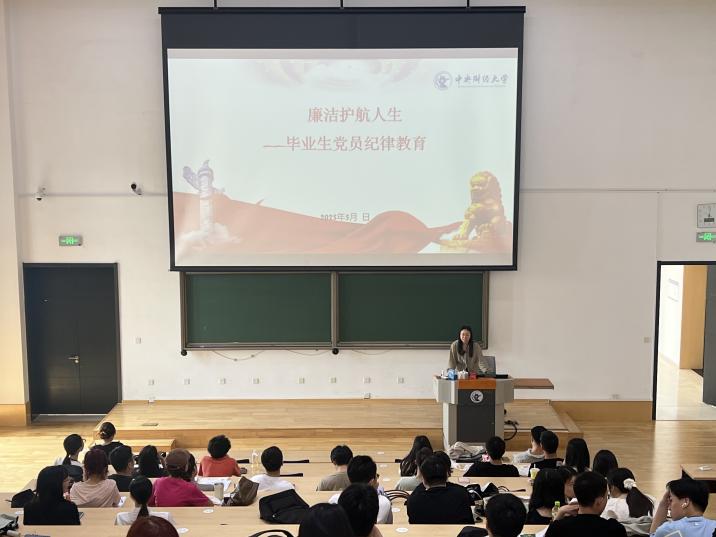 王祎老师从违纪违法离年轻人有多远、廉洁是什么、作为青年毕业生如何让廉洁护航人生三个方面进行毕业生党员纪律教育,结合近年来年轻干部违纪违法的典型案例剖析了腐败低龄化的特征和诱因,提醒毕业生要筑牢思想防线,严守纪法底线,以“有理想、敢担当、能吃苦、肯奋斗”的作风走好职场第一步。