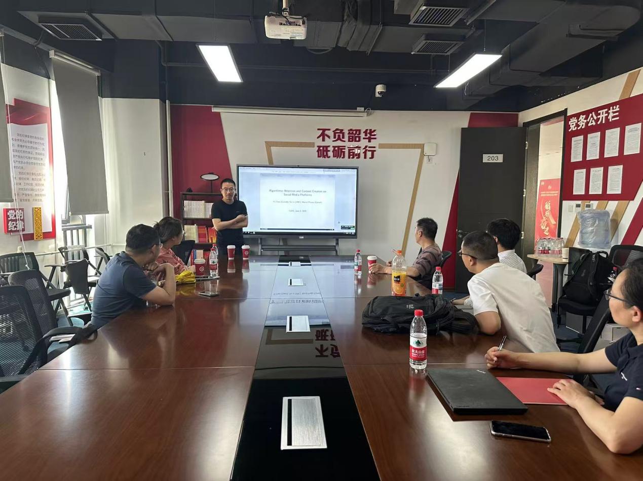 6月6日(周三)下午,伟德bv19462025年专题学术讲座在沙河校区学院11号楼203会议室举行。此次讲座邀请到美国康奈尔大学商学院经济系助理教授陈轶博士,分享其题为“Algorithmic Attention and Content Creation on Social Media Platforms”(社交媒体平台上的算法注意力与内容创作)的最新研究。1946伟德国际源自英国龚雅娴副教授主持讲座,1946伟德国际源自英国多位老师和十余名学生参加了此次讲座。