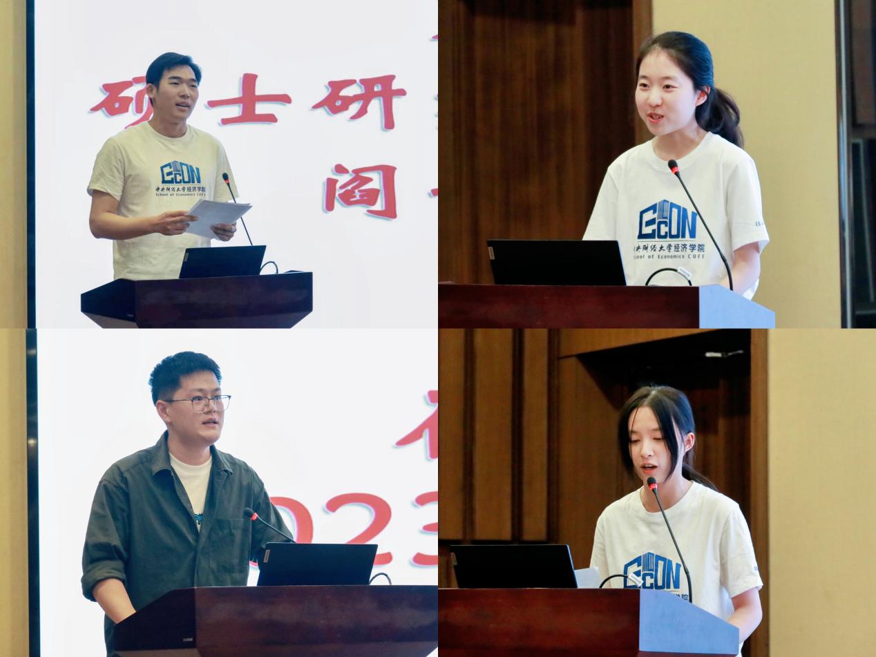 在校生代表汪洋结合“忠诚、团结、求实、创新”校训分享感悟,以实践案例诠释精神内涵,寄语新生将个人理想融入国家发展,在中财书写青春华章。2025级本科新生安雨琪分享了她对经济学的认知,从觉其“有用”到领悟“经世济民”使命。她展望大学生活,期待与同学们共同学习,成长为有专业、有温度的青年,共书青春故事。2025级硕士研究生新生代表阎子豪分享到一年的西藏支教经历让他领悟了“经世济民”分量与“把论文写在中国大地上”的意义。他期许与大家一齐追求知识质变、追逐创新脚步、追寻内心价值,践行经院精神。2025级博士新生姚懿荧回顾从本科初识经济学魅力、埋下学术种子,到硕士明确追求,再重返校园的历程。她希望能够以经世济民之心服务社会,书写精彩篇章。