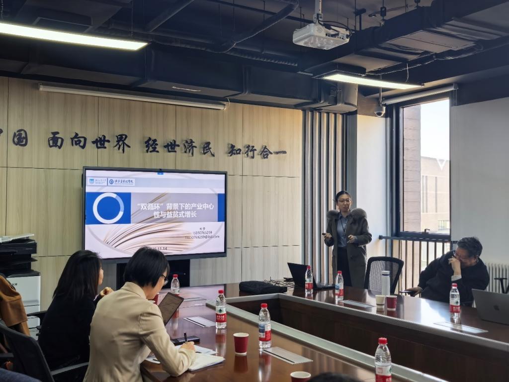 在互动交流环节中,与会师生就指标构建与模型稳健性、不同地区样本的异质性、双循环下区域产业政策的优化方向等问题踊跃提问。刘梦副教授结合论文撰写和数据处理的具体经验,详细解答了关于复杂网络模型设定、中心性指标解释以及空间溢出效应识别等方面的疑问,并与师生探讨了未来研究可在数字经济、绿色转型与共同富裕等领域进一步拓展的可能。