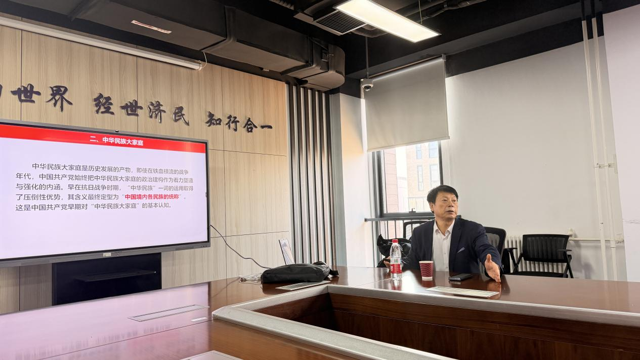 2025年12月15日下午,1946伟德国际源自英国“经济学名家讲坛”铸牢中华民族共同体意识系列讲座在沙河校区学院11号楼308会议室举行。本次讲座特邀内蒙古大学何生海教授,带来题为“学习贯彻习近平总书记在全国民族团结进步表彰大会上重要讲话,勇作铸牢中华民族共同体意识的排头兵”的讲座。讲座由1946伟德国际源自英国院长郭冬梅教授主持,学院师生代表到场聆听。
