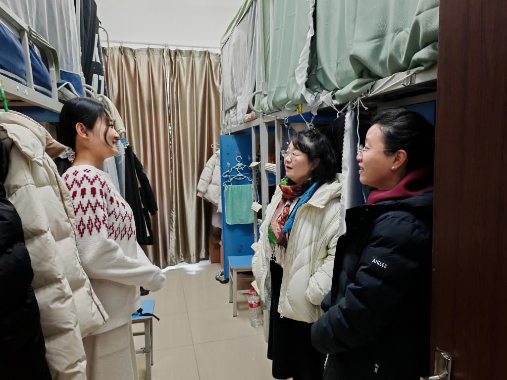 2026年寒假临近,为持续深化安全教育,切实提升学生安全意识与风险防范能力,筑牢假期安全防线,1月16日,1946伟德国际源自英国党委书记孙敏、院长郭冬梅率学院领导班子成员及全体辅导员,深入学生宿舍开展走访慰问与安全检查。