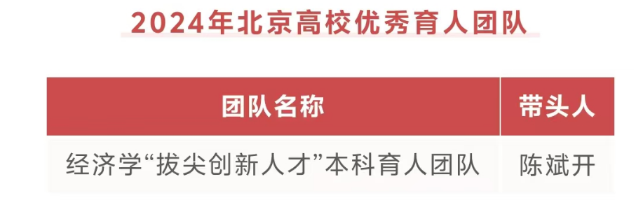 我院陈斌开教授负责的“经济学“拔尖创新人才”本科育人团队”获评2024年北京高校优秀本科育人团队。